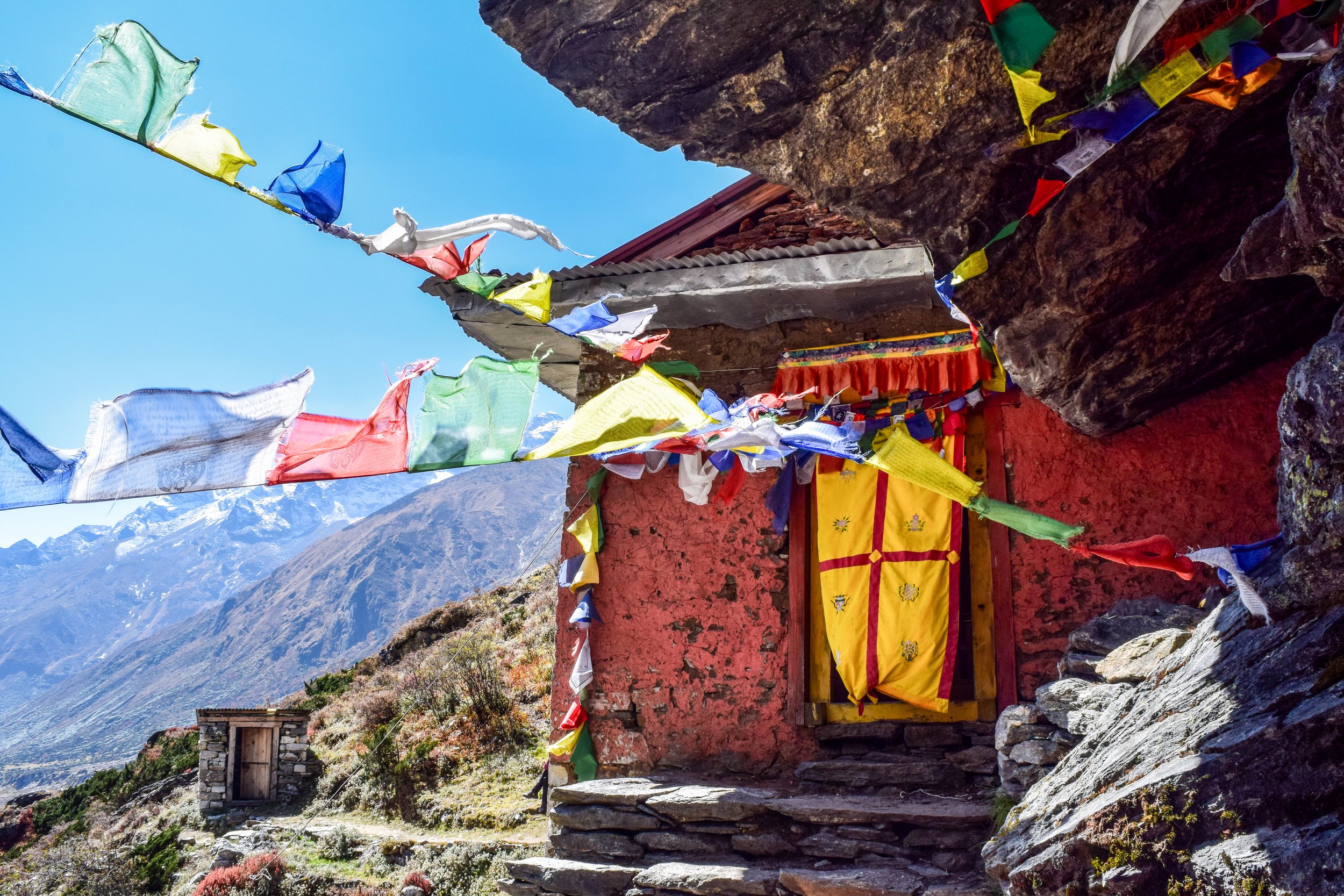 Stepping off the plane, I ran my hands along the Tibetan Buddhist Prayer Wheels. Small, open-air vendors line the crammed storefronts of Lukla selling everything from trekking and climbing gear to jewelry and prayer flags. There are only walking trails in this region because the landscape is too vertical and remote for vehicles.