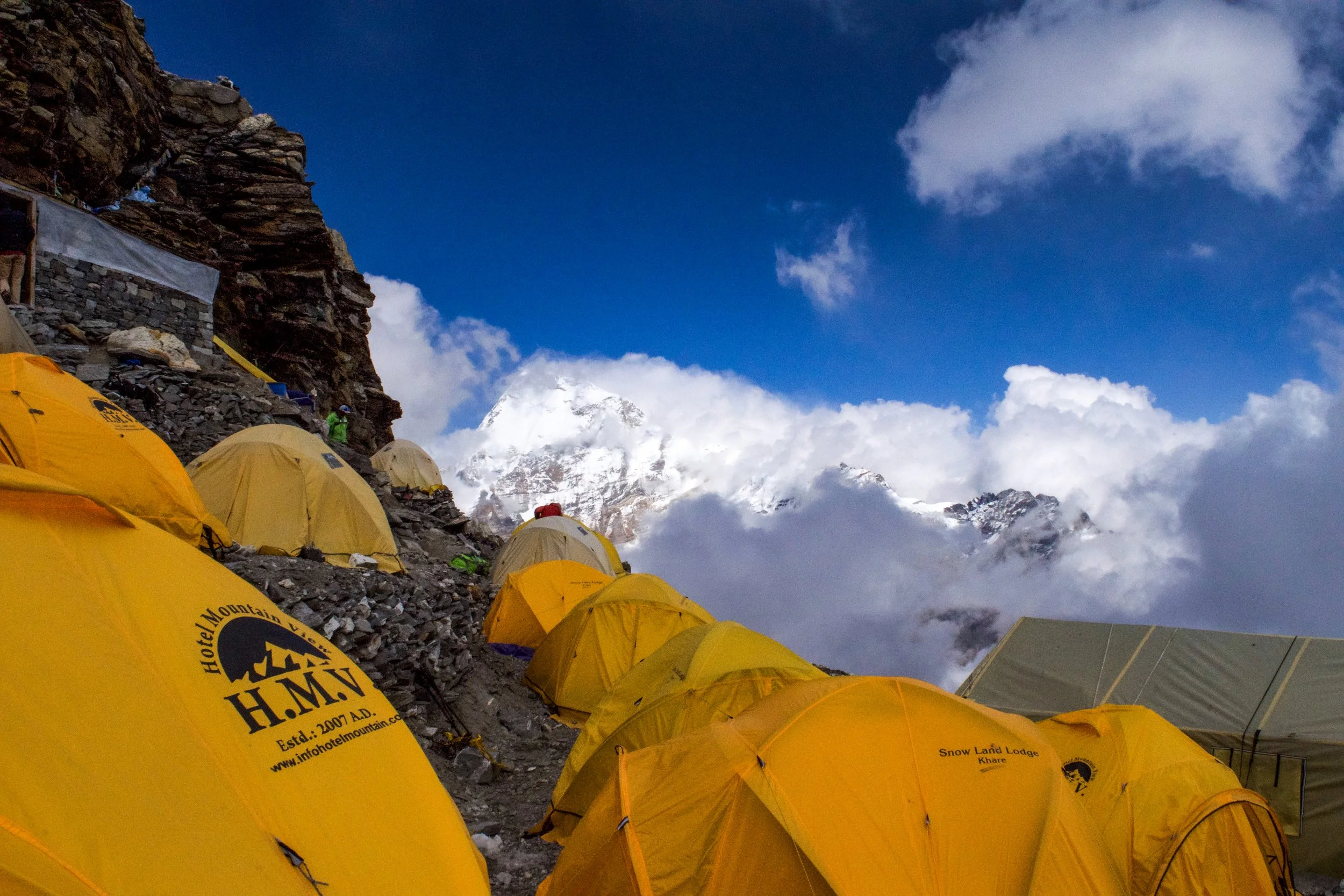 Standing at 18,000 feet on the edge of a glacier facing the Everest range, I took my camera out and snapped a few photos. I tried to ignore the headache creeping in and take a moment to appreciate the beauty of the sun setting over the Himalayas. My stomach felt like it could turn inside out if I tried to eat my frozen boiled egg too quickly, so I crawled in my orange, winterized tent sitting between a rock wall and the high camp cook’s tent.